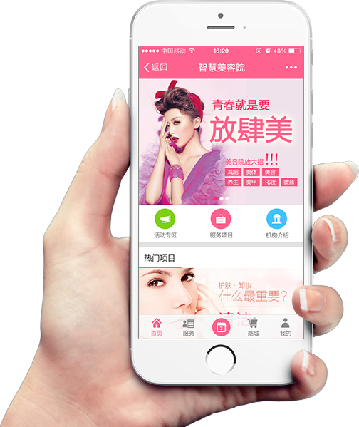 互聯網+美容院的,融合了移動互聯網和傳統美容院,幫助美容院實現O2O